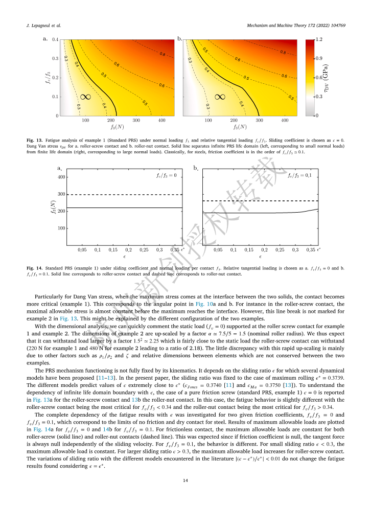 Fatigue lifespan of a planetary roller-screw mechanism(22年行星滾柱絲杠機(jī)構(gòu)的疲勞壽命)